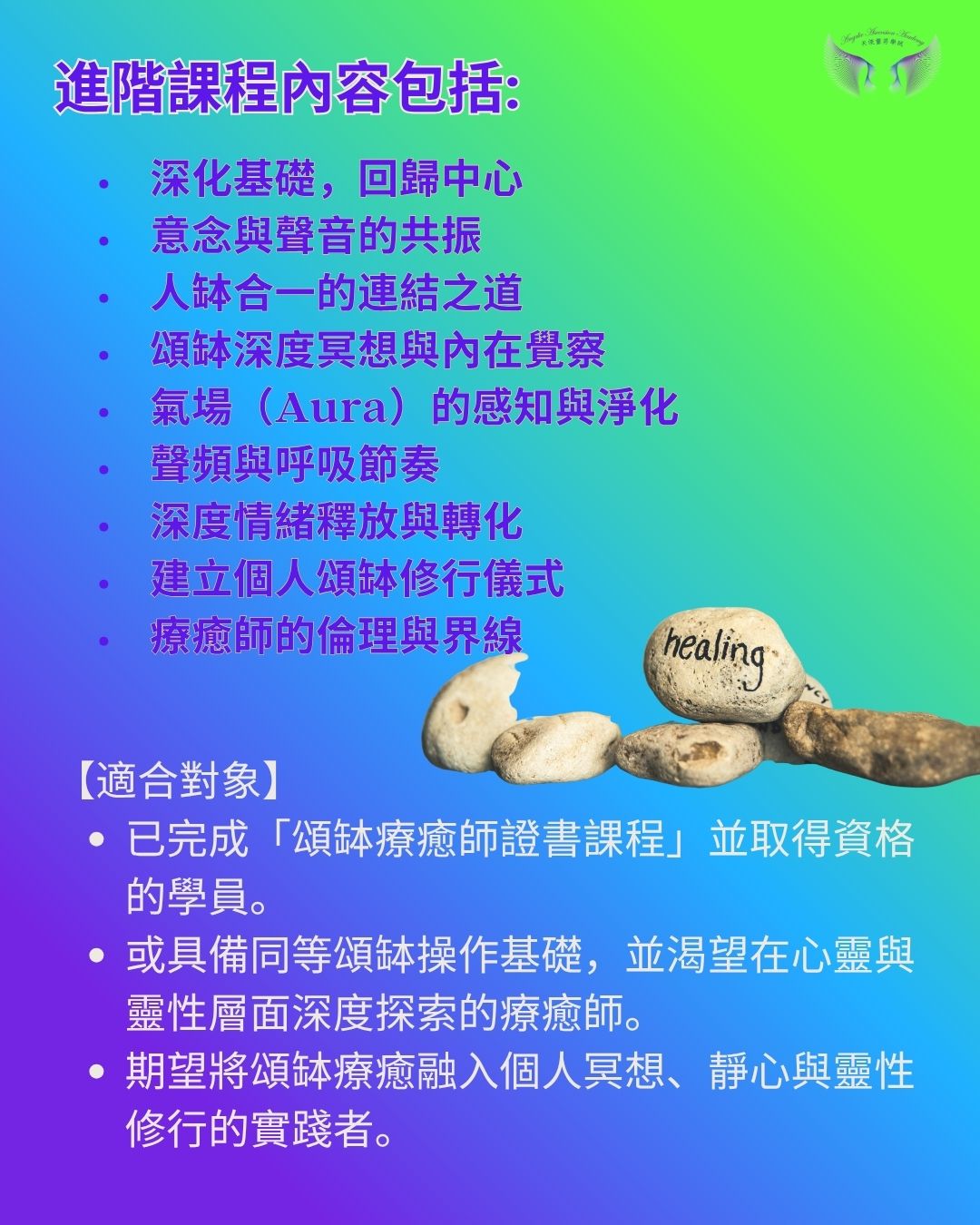 從「頌缽療癒師」提升成為一位「療癒修行者」。