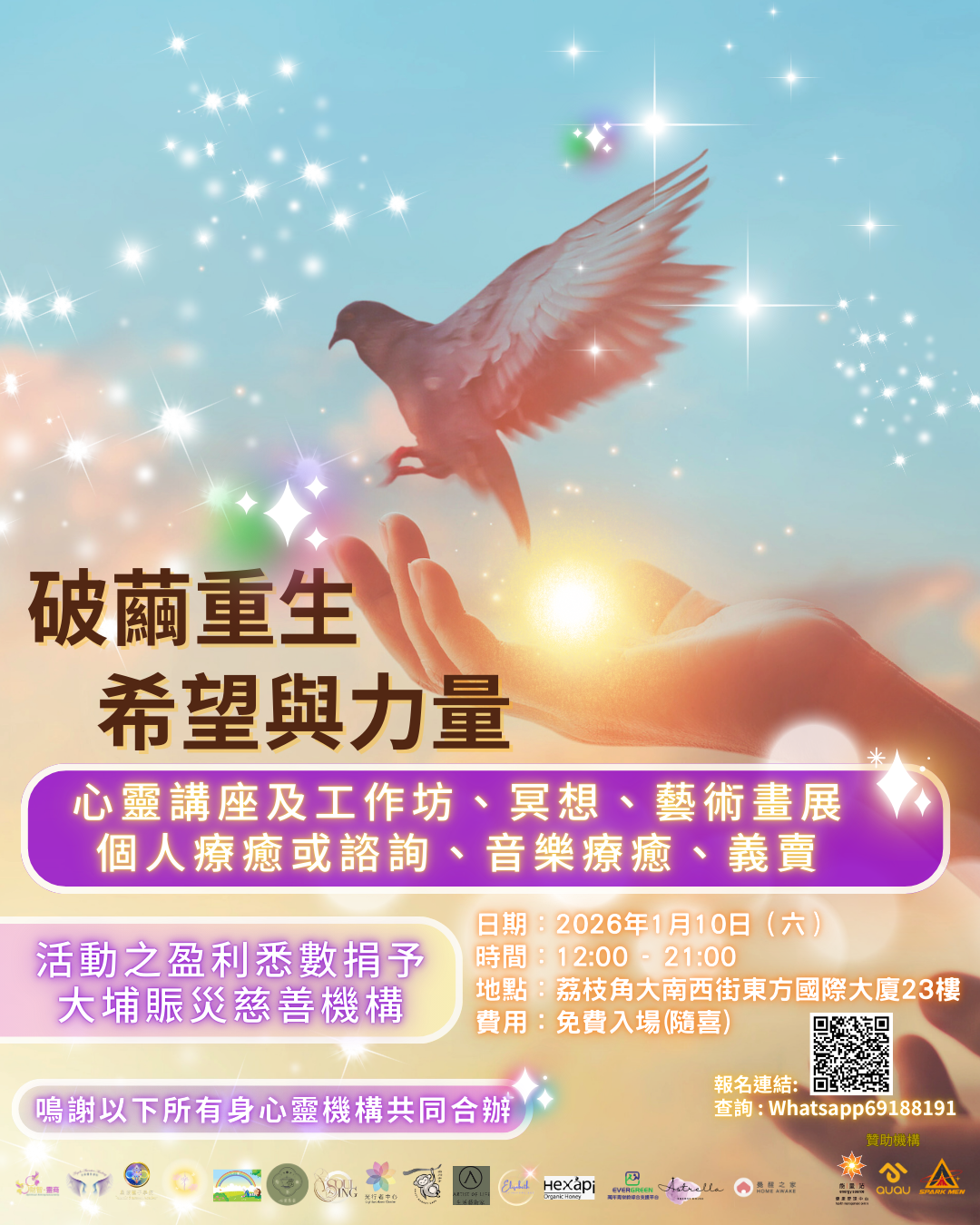 集合二十多間身心靈機構、導師與療癒師,舉辦一天「破繭重生 希望與力量」慈善活動。