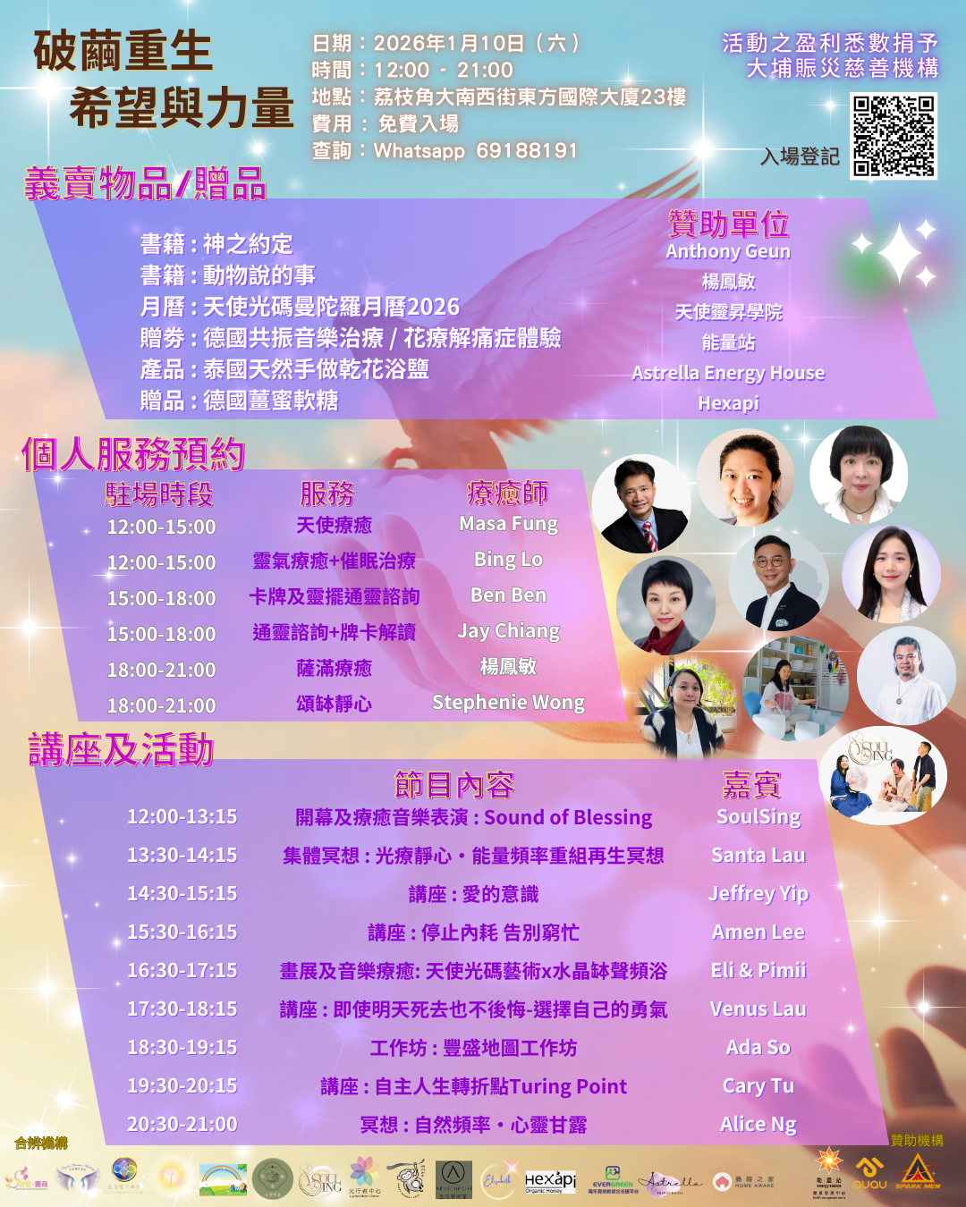 集合二十多間身心靈機構、導師與療癒師,舉辦一天「破繭重生 希望與力量」慈善活動。